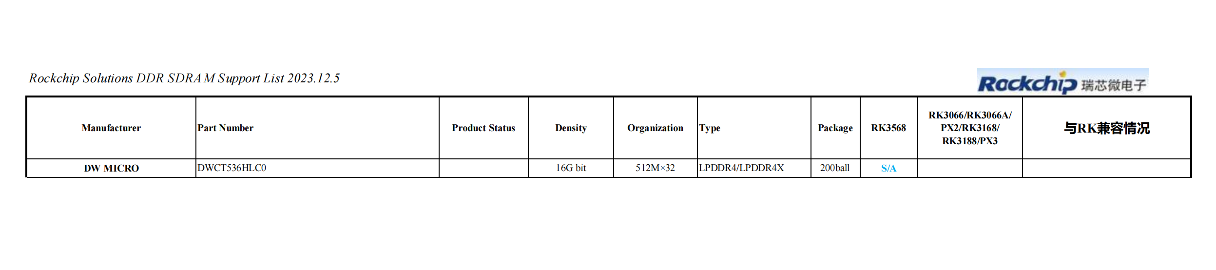 近日,深圳市大为创芯微电子科技有限公司(DW MICRO,以下简称“大为创芯”)在技术创新上迈出了坚实的一步,其LPDDR4X DWCT536HLC0 产品通过了瑞芯微RK3568平台的严苛认证程序。