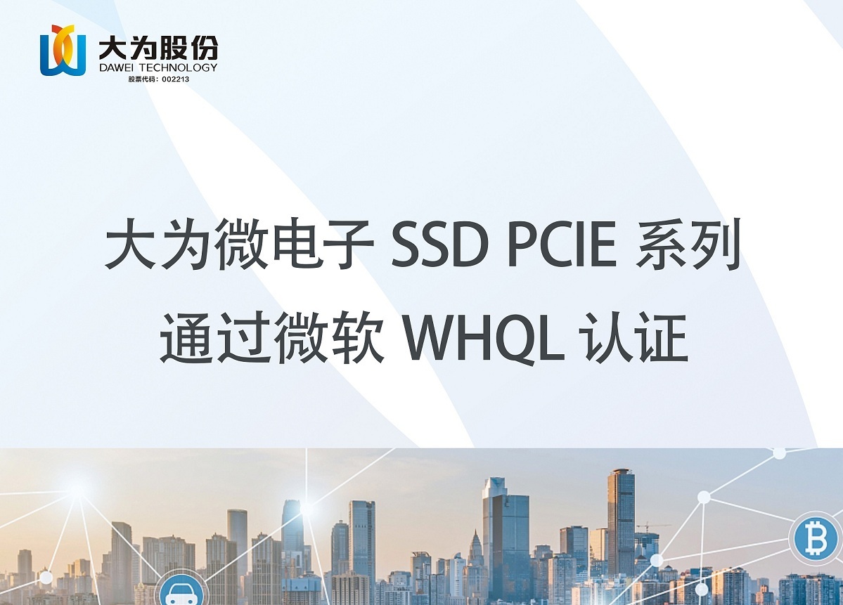 大为微电子SSD PCIE系列通过微软WHQL认证
