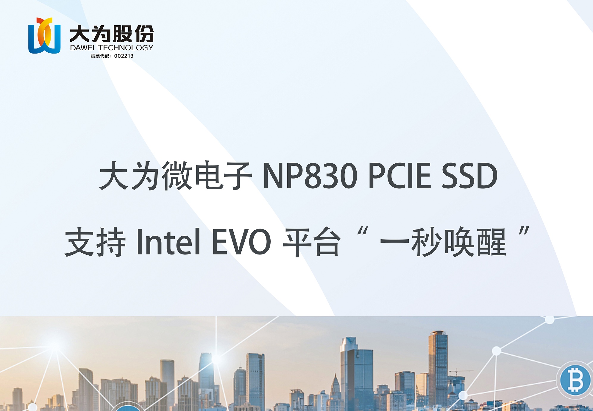 大为微电子NP830 PCIE SSD支持Intel EVO 平台 “一秒唤醒”